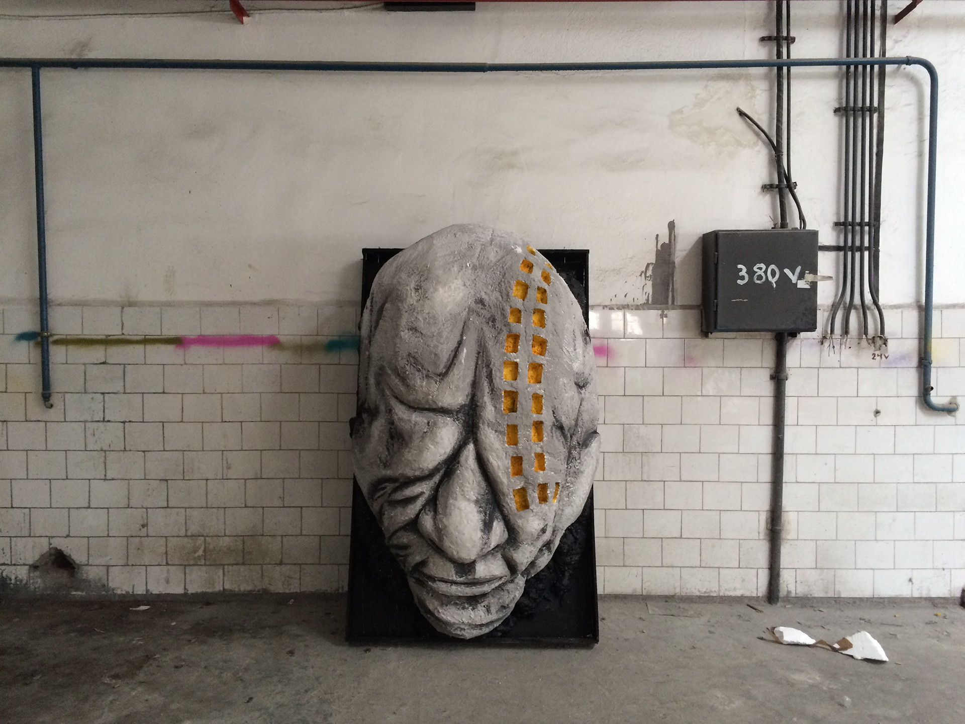 "windows of perception" - 200x125cm sculpture made from polystyrene, plaster, isolation foam, wood panels and acrylic paint.